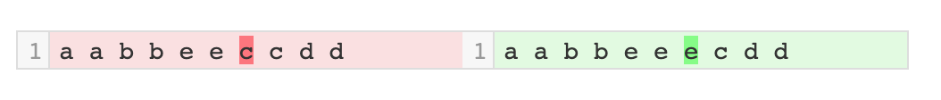 Programmers spend a lot of time looking at diffs. For example, when we get an error like expected 'aabbeeccdd' but got 'aabbeeecdd', we don’t squint at the screen, we run a diff tool - a program that shows: